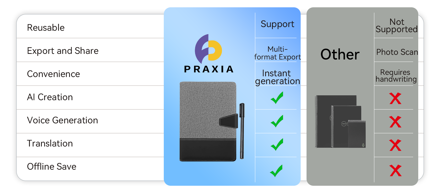 No matter where you are or what language you speak, your ideas deserve to be heard. Praxia Digital Notebook helps you translate and create seamlessly across multiple languages—so you can share your thoughts freely, connect with more people, and let your creativity travel the world.